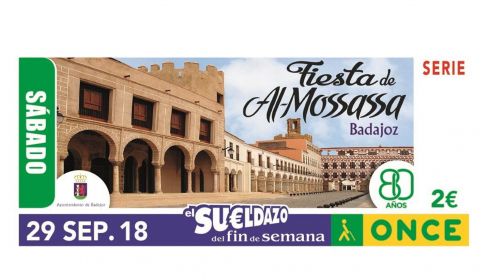 Este sorteo del sábado 29 de septiembre ha dejado otro cupón premiado con 20.000 euros a las cinco cifras en Fuengirola (Málaga), y otro en Fernán Núñez (Córdoba), y ha llevado el resto de premios hasta Aragón, Canarias, La Rioja y Comunidad de Madrid. Su motivo estaba dedicado a la fiesta de Al-Mossassa, de Badajoz.