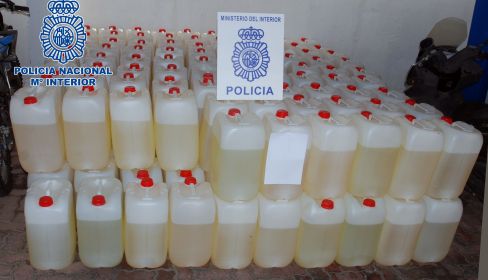 Agentes de la Policía Nacional han procedido a la aprehensión de 4.400 litros de combustible, distribuido en 176 bidones en el interior de un garaje de la calle Mar Caspio de esta ciudad y destinado principalmente abastecer a las narcolanchas, en las actividades de logística y aprovisionamiento aparejadas al tráfico de drogas.