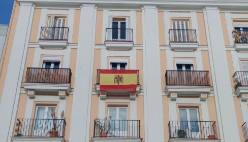 En el Puerto de Santa María, en un balcón de un edificio de la avenida de la Bajamar, una bandera franquista desafiaba a la nueva Ley de Memoria Democrática.
