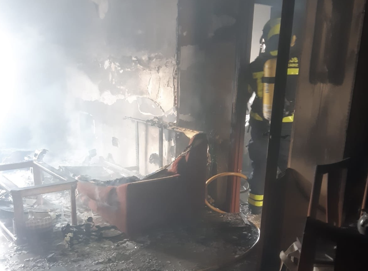 En cuanto a los daños materiales, el fuego ha afectado a toda la vivienda, principalmente al salón, que ha quedado calcinado. Se ha recomendado el desalojo del domicilio por la acumulación del humo. También se ha visto afectado el suministro eléctrico del bloque.