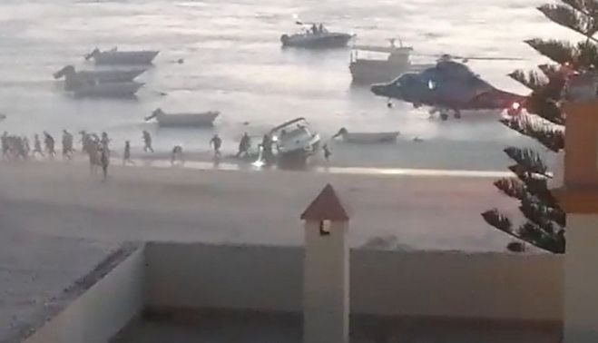 Un vídeo en las redes sociales revela una escena en la playa de Bonanza, en Sanlúcar que ha provocado la indignación de muchas personas. Numerosos vídeos divulgados en redes sociales recopilan supuestas imágenes de un helicóptero del servicio de Aduanas pilotando cerca de la orilla para intentar alejar a un tumulto de gente de una lancha encallada en esta zona del litoral gaditano.