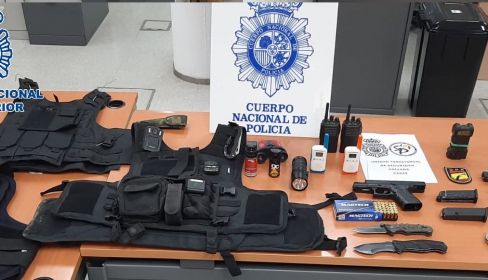 A estos falsos vigilantes les han sido intervenidos, entre otros efectos, una pistola con tres cargadores y 82 cartuchos de 9 milímetros, así como una pistola de simulada, una defensa eléctrica, un chaleco antibalas, dos chalecos tácticos, equipos de comunicaciones portátiles, dos navajas militares de grandes dimensiones, unos grilletes, unos prismáticos y varias linternas de gran potencia. Además, en la finca también había cuatro jóvenes que simultaneaban las tareas de riego con las de vigilancia acompañados de un perro de presa.