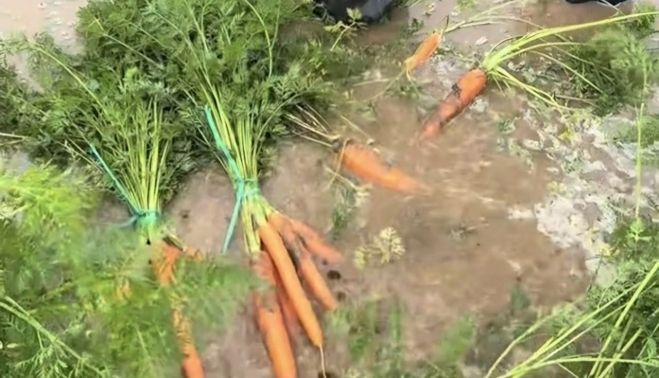 Son varios los agricultores que han compartido en redes o a través de aplicaciones de mensajería vídeos donde se observan los cultivos destrozados por las lluvias torrenciales de la borrasca Laurence. De esta forma, es posible ver zanahorias flotando por el campo debido a las grandes cantidades de agua o 'ríos' saliendo por las plantaciones de patata después de cubrir por completo toda la tierra con más de un palmo.
