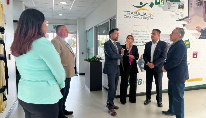 A continuación, la delegación ha visitado las instalaciones de la Zona Franca de Bogotá, que es la única en el área urbana de la capital colombiana y se encuentra a tan solo seis kilómetros del aeropuerto internacional El Dorado, lo que permite tener un corredor logístico corto y seguro al principal terminal de carga aérea del país.
