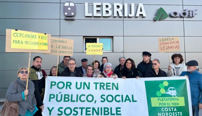 La Plataforma por el tren de la Costa Noroeste ha llevado su reivindicación hasta la estación de Lebrija, donde se ha concentrado para exigir una mejora urgente del servicio de cercanías entre Lebrija y Sevilla. Denuncian que la actual oferta ferroviaria es insuficiente, con escasa frecuencia de trenes y sin una conexión adecuada desde los municipios de la Costa Noroeste. Su propuesta incluye la creación de una línea de autobuses que enlace la estación de Lebrija con Trebujena, Sanlúcar y Chipiona, facilitando así el acceso al tren. Esta movilización se enmarca dentro de la Semana de Lucha por el Tren, que se desarrolla en toda España del 24 al 30 de noviembre.