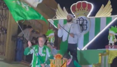 Durante el recorrido, dos participantes ondeaban la bandera con el escudo, mientras que todas las personas que iban subidas a la carroza portaban bufandas y camisetas del equipo verdiblanco. Una estampa que reflejaba a la perfección una afición entregada, muy presente en El Viso del Alcor en una noche tan señalada. El verde y blanco se abrían paso entre la música, los caramelos y los aplausos del público.