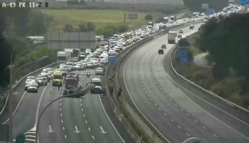 La incidencia fue notificada en torno a las 17.30 horas por la Dirección General de Tráfico (DGT), que informó de las retenciones que se estaban produciendo en este punto de una vía especialmente transitada en una jornada marcada por los desplazamientos propios de un día laborable. El suceso llegó a generar hasta tres kilómetros de atasco a la altura del kilómetro 12, con decenas de vehículos afectados en su avance hacia la capital andaluza.