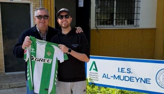 “Él hará lo que quiera ahora con la camiseta, claro”, ha adelantado El Palaciego después de haberse presentado en las instalaciones del instituto para hacerle solemne entrega de la camiseta al profesor de Religión, que lo ha recibido junto a la algarabía de un alumnado que le reclamaba la prenda verdiblanca. “¡Danos la camiseta, Diéguez!”, le gritaban algunos de sus alumnos.