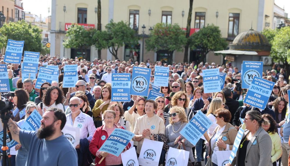 Allí, en la Plaza de España de Lebrija, había esta mañana de lunes autónomos de todo tipo, desde hosteleros hasta vendedores de electrodomésticos, pasando por empresarios de la construcción, libreros, tenderos o agentes de seguros.