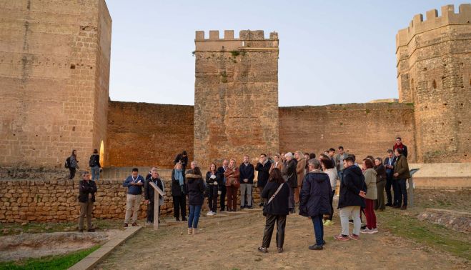 La comitiva inaugural paseó durante el último crepúsculo de ayer por las distintas dependencias de un Castillo calificado por la regidora de Alcalá de Guadaíra como “el símbolo y el origen de los alcalareños”, pues la localidad surgió primero en el interior del enorme recinto amurallado y más tarde, a partir del siglo XV, fue creciendo extramuros.