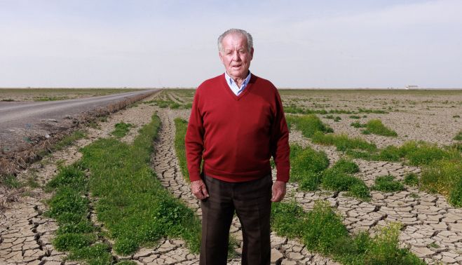 “Vengo para echarle de comer a los perros”, dice como si con esa excusa no delatara que también viene porque necesita perderse la vista, adrede, en estas llanuras infinitas de las marismas que empiezan en su pueblo, Los Palacios y Villafranca, tan cerca ya del poblado de Chapatales; porque necesita que este sol lo broncee aunque solo sea un rato después de toda una vida trabajando sin apenas sombra; y porque, al fin y al cabo, no se ha jubilado porque le hubiera llegado la hora ni por cansancio ni por voluntad propia, sino “por el oído”, dice señalándose al que más le falla, y porque su jefe, Don Juan, como ha llamado siempre él a Juan de Porres Osborne (el esposo de Blanca Guardiola, de los Guardiola de toda la vida), falleció antes de lo que ambos tenían previsto. “Es verdad que, si no, no me jubilo”, reconoce Manuel.