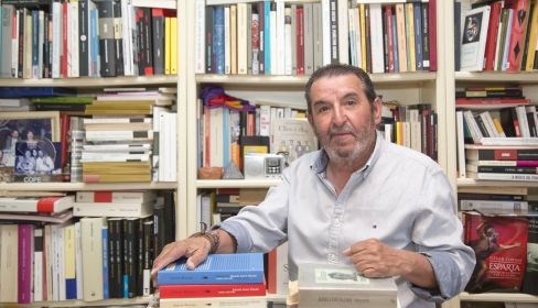“Primero me cedieron mis padres, que vivían abajo antes de fallecer, una habitación para que yo colocara libros, pero al final cogí dos”, recuerda. Y lo mismo hizo con un local que le ofreció para el mismo cometido su amiga Carmen Mari Panera, “pero la casa de mis padres se vendió y el local de mi amiga es ya de sus hijas y yo no quiero abusar”, explica el periodista, un tanto desbordado por los libros que le ocupan habitaciones y paredes enteras en su hogar, mesas atestadas y torretas de ejemplares en los sitios más insospechados, y eso que su hija se ha llevado también una buena parte después de casarse.