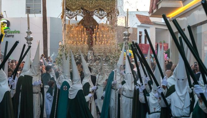 Es complicada pero cierta esa combinación del profundo respeto que la Virgen de los Remedios despierta por donde va con el enfervorecido jolgorio que suscita al mismo tiempo. A la Hermandad no le hace falta ordenar las filas ni mandar silencio ni darle órdenes a nadie porque está convencida de que el amor por su Virgen no admite cortapisas mundanas. Pero es Ella, desde el altar de su paso, la que ordena y sana conforme pasa. Se notaba ayer tarde por la siempre encendida de soles calle Larra, por supuesto, y luego por la calle Arenal y por ese Villa Alfaro donde llovió la primera petalada, porque aquí el Furraque no se limita a una calle o dos, sino que Furraque es un concepto espiritual que se derrama por donde Ella quiere, sin más, de modo que también la calle Buenos Aires es Furraque, y el Toledillo es Furraque y la Pililla es Furraque, sobre todo en Jueves Santo y hasta la calle Rafael Alberti, con toda su gracia poética de vía bautizada por un poeta comunista, es también Furraque porque la Reme lo quiere, y en el colmo de esa Furraquización del Jueves Santo, hasta el centro histórico por carrera oficial y por la calle Hospital y la Parroquia Mayor de Santa María la Blanca se perfuma indefectiblemente de Remedios porque la remediadora Madre de Dios así lo decreta desde aquella vez en que le dijo a Cristo para que comenzara todo: “Hijo, no tienen vino”. Y se hizo el Remedio.