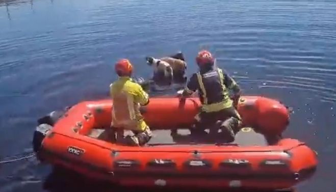 Finalmente, la intervención concluyó con éxito. Los bomberos lograron trasladar a los dos perros en la balsa hinchable y ponerlos a salvo, culminando así un rescate especialmente complicado por el entorno en el que se encontraban los animales.