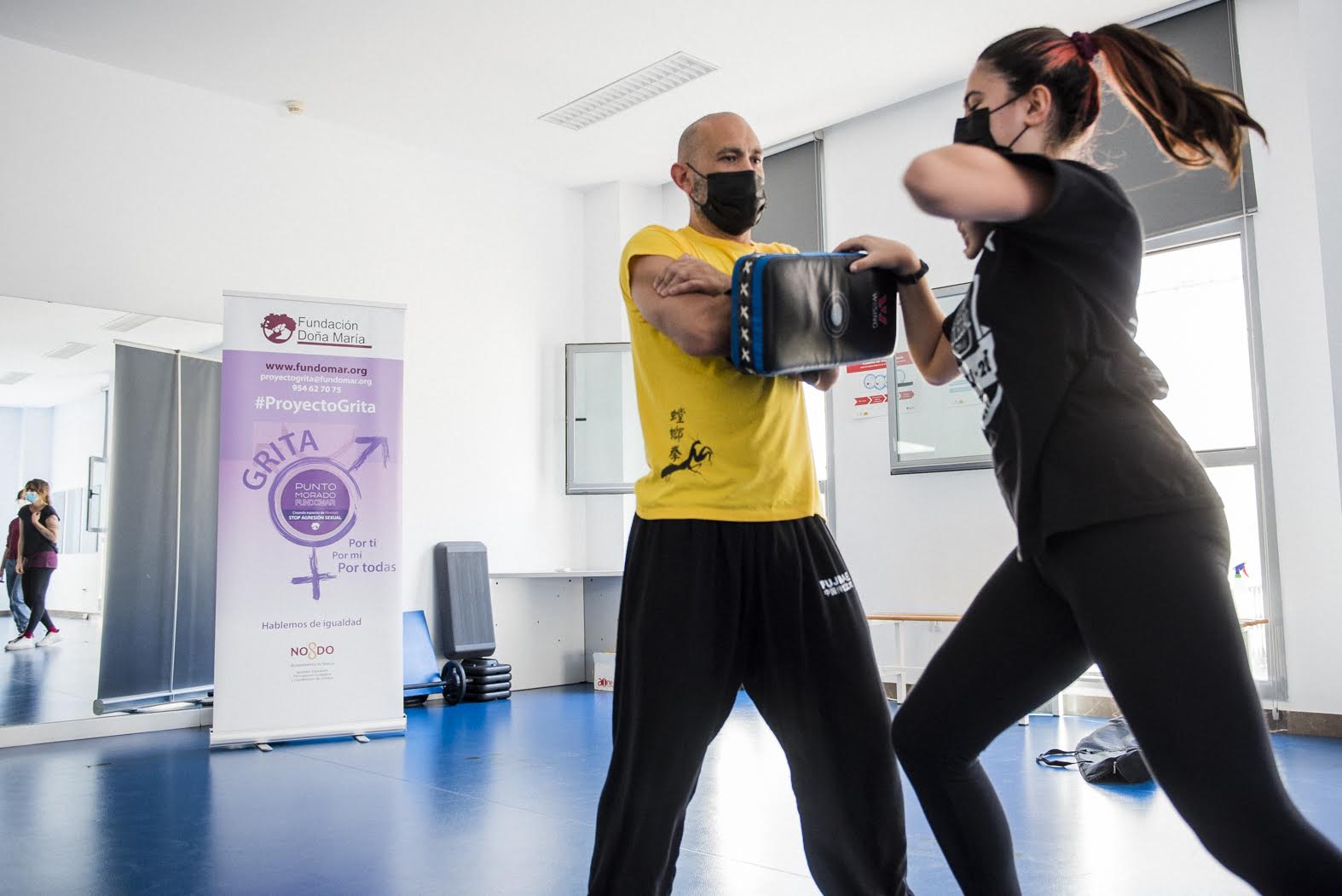 El Proyecto Grita facilita estas dinámicas con el fin de erradicar la violencia sexual, a través de diferentes áreas de actuación centradas en el fomento de un pensamiento crítico entre la población joven sobre los modelos de masculinidad y feminidad sexistas, el análisis de las formas de violencia dentro de las relaciones y la activación de la conciencia y respuesta ciudadana contra estas agresiones. En este caso, un grupo intergeneracional de mujeres participan en unas jornadas gratuitas de sensibilización sobre el acoso sexual, especialmente en zonas deportivas y de ocio, con una parte práctica de recursos en defensa personal en el Centro Deportivo San Luis.