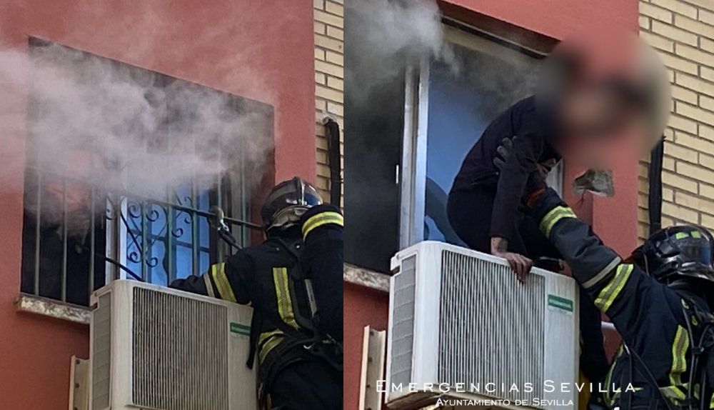 A las 11:55 horas, un joven de 25 años fue evacuado al hospital después de inhalar humo durante un incendio en su vivienda, ubicada en la Plaza de Monesterio, Sevilla. La rápida actuación de la Policía de Sevilla y los Bomberos permitió el rescate del joven a través de una ventana tras retirar la reja de seguridad.