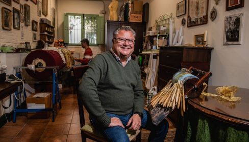 La Semana Santa genera en Sevilla millones de historias. Fe, pasión. Y, también, formas de entender la vida diferentes. En el taller de Alfonso Aguilar, dentro del magnífico espacio del arte que es el rincón de la calle Goles de Sevilla donde tantos artesanos tienen su casa, su medio de trabajo, se respira otro modo de hacer las cosas.