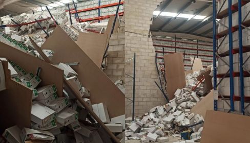 La caída de unas estanterías de grandes dimensiones y un muro provocó el accidente, quedando una persona sin posibilidad de salir. Tras ser rescatada, fue trasladada por el 061 a un centro hospitalario.