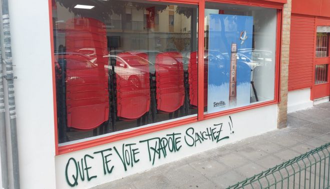 El PSOE ha sufrio este lunes un ataque vandálico en una de las sedes que tiene en la ciudad de Sevilla. En concreto en la Agrupación Macarena. La fachada del local ha aparecido con pintadas que atacan al presidente del Gobierno y secretario general de los socialistas, Pedro Sánchez.
