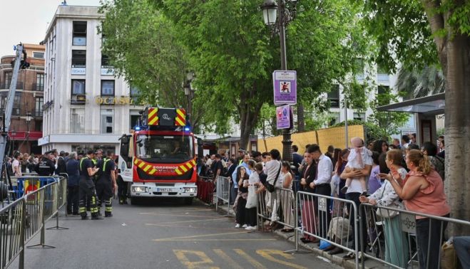 Una anécdota, o una falta de previsión. Lo cierto es que los bomberos de Sevilla han sido llamados de urgencia este Domingo de Ramos a la plaza del Duque para realizar una poda de árboles que impedían la entrada de los pasos.
