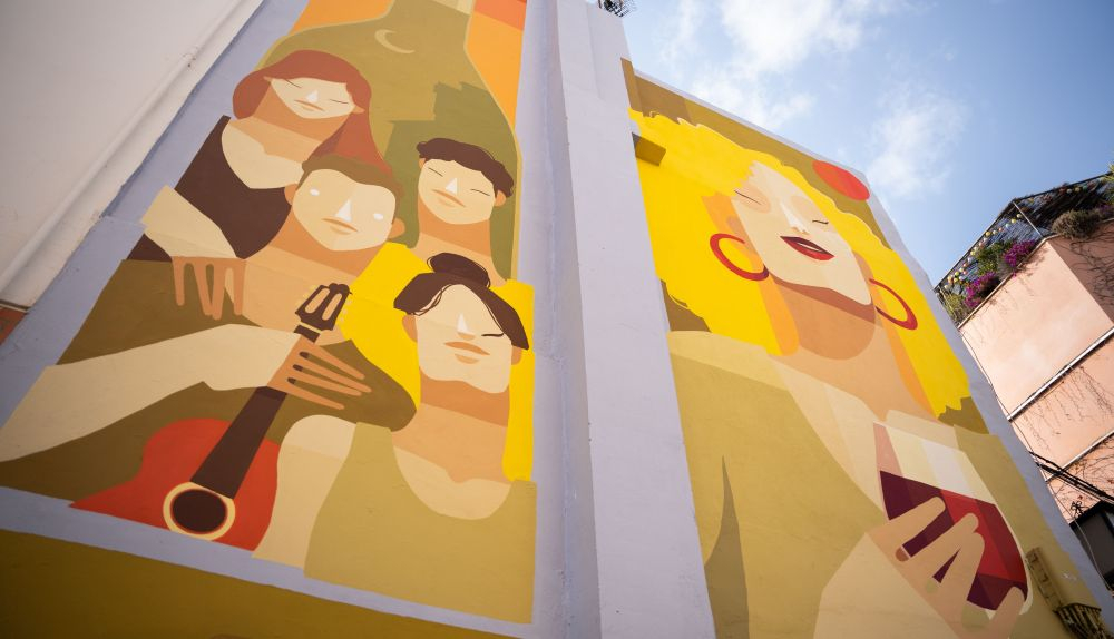 Para esta intervención, Zësar Bahamonte ha podido desarrollar conceptos presentes a lo largo de toda su trayectoria, como son la belleza de las relaciones humanas en el amor, en la creación y en la amistad. La obra de Bahamonte se caracteriza por su investigación constante de paletas de colores vibrantes y armónicas, y formas cromáticas que el autor ha podido plasmar en proyectos internacionales en lugares como São Paulo, Ciudad de México, Barcelona, Lisboa, Buenos Aires, Bogotá, Jerusalén, Amsterdam o París. Esta obra supone el primer mural de grandes dimensiones que el artista realiza en su ciudad natal.