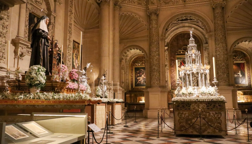 Patio de los Naranjos: púlpito del Patio renacentista como fuente de evangelización y desarrollo de la piedad popular, donde destacaron predicadores inspiraron a los fieles. Capilla de la Virgen de la Granada: única superviviente de la primitiva Catedral, alberga la imagen de la Virgen de la Granada, una obra que simboliza el marianismo y cuenta con la proyección de un video que documenta devociones y hermandades históricas.