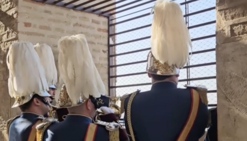 La ceremonia comenzó con el desfile de los alabarderos de la Banda del Sol por las gradas de la Catedral, situándose en la Puerta de Palos mientras suenan las campanas que anteceden los toques. Estos se repiten tres veces por cada cara de la Giralda. Una vez concluidos, el cuerpo de clarines y alabarderos se reúne ante la Giralda para dirigirse a la Capilla Real, donde rinden homenaje frente a la Virgen de los Reyes.