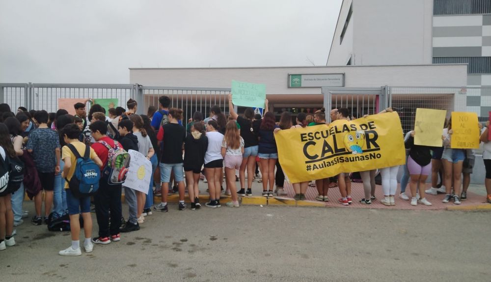 Alrededor de quince centros educativos se han sumado a las protestas desde primera hora de la mañana. "Tenemos una ley de bioclimatización desde hace cuatro años en el BOJA que no cumplen", expresaba el movimiento 'Escuelas de calor', que aglutina a estos centros, a través de sus redes sociales.