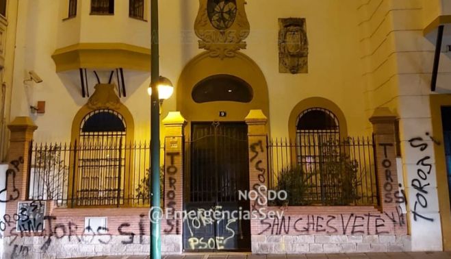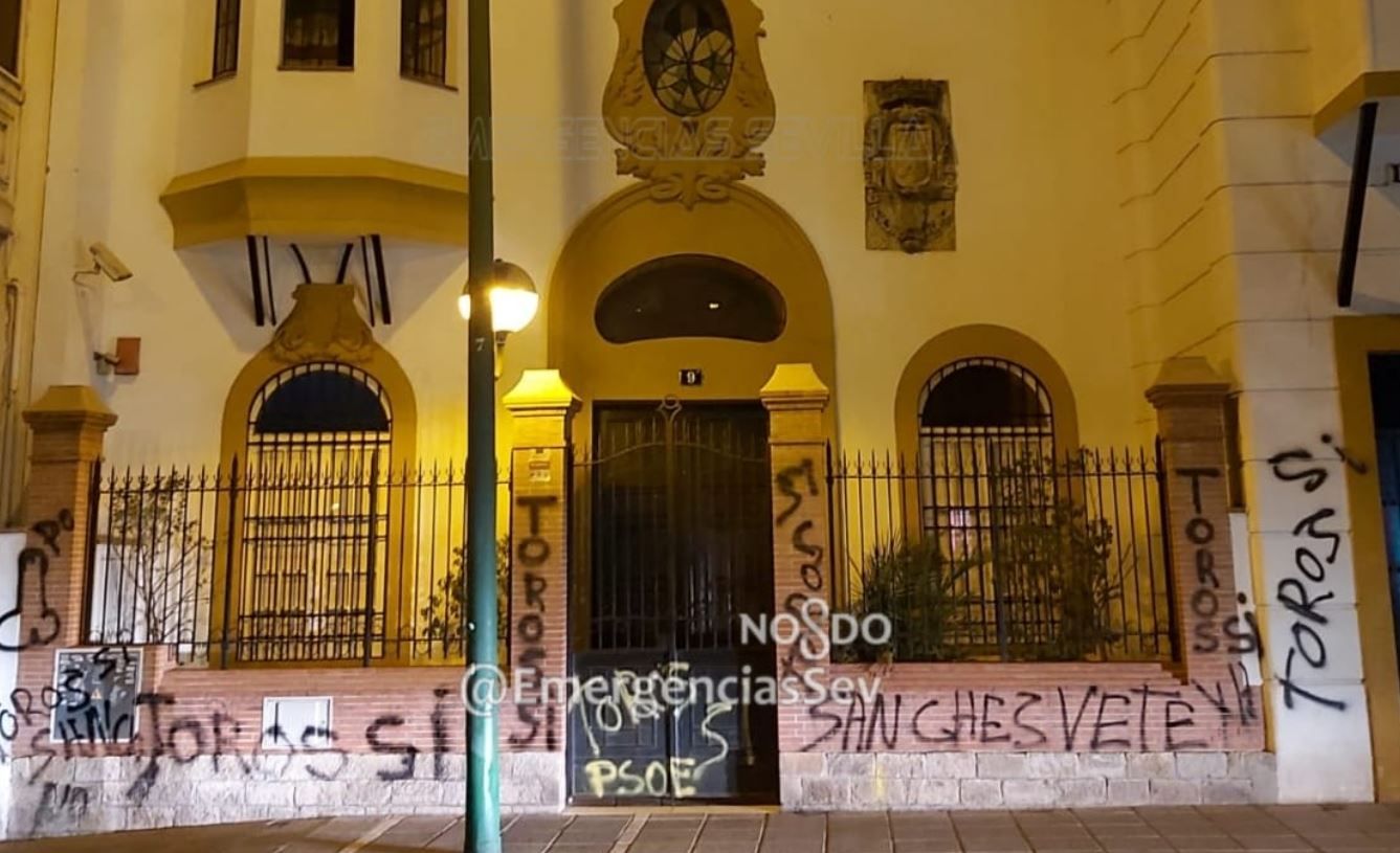 Las tres personas identificadas en la madrugada de ayer como presuntas autoras de las pintadas en la sede del PSOE de Sevilla son banderilleros, según ha publicado el Diario de Sevilla. Los sospechosos fueron sorprendido la madrugada del miércoles cuando llenaban la sede provincial socialista, situada en la avenida de Luis Montoto, de pintadas en las que defendían a la tauromaquia y criticaban al gobierno socialista.