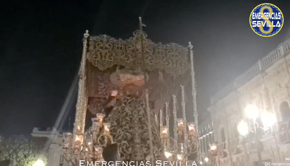 "El palio del Dulce Nombre ha permanecido enganchado al cable de una cámara aérea durante varios minutos en la Plaza de San Francisco . Con la caña de encender se ha desenganchado", publicó en su cuenta de Twitter El Llamador, de Canal Sur.