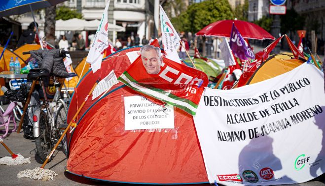 En paralelo, la Sección Sindical de Comisiones Obreras (CCOO) en el Ayuntamiento ha denunciado la existencia de trabas municipales al desarrollo de la acampada iniciada el lunes en la Puerta de Jerez, donde los trabajadores expresan su rechazo a la externalización del servicio de limpieza escolar.