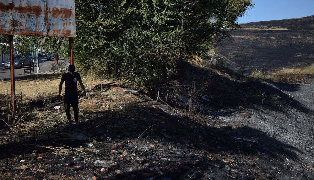 Los okupas del otro lado del terreno calcinado siguen recogiendo basura. Algunos dicen que es porque esto ya les ha asustado después de acusarlos de tirar todo al monte. Mientras tanto los curiosos siguen llegando y debatiendo sobre las causas y las consecuencias. No hay viviendas afectadas, pero poco ha faltado. El miedo ahora está en que lluvias torrenciales provoquen una riada que inunde el pueblo. A la vez, lamentan la falta de mantenimiento del gobierno municipal. En un parque cercano, un columpio con forma de caballo también está ennegrecido.