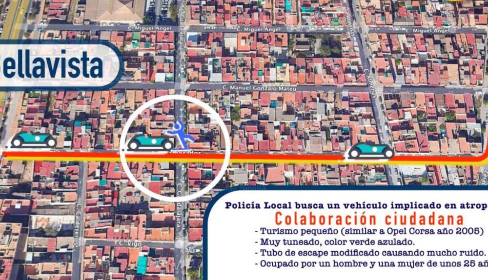 La Policía Local de Sevilla ha solicitado la colaboración ciudadana para identificar al conductor de un vehículo que ha huido tras atropellar a un hombre de 47 años en el barrio de Bellavista, provocándole lesiones de extrema gravedad. El suceso ha tenido lugar este martes, 17 de junio, en torno a las 16:00 horas, en la intersección de la calle Enamorados con la calle Guadalajara.
