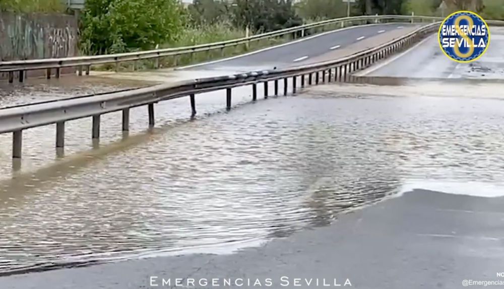 Las lluvias que están cayendo en la jornada de hoy han provocado un corte de tráfico en Sevilla en un tramo de la carretera SE-020, entre el kilómetro 3 y 5.