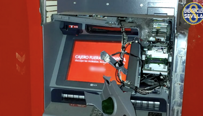 Para tratar de acceder a su interior y llevarse el dinero en efectivo estaba utilizando una barra de hierro, así como varios adoquines con los que propinó numerosos golpes hasta reventar el exterior del cajero.