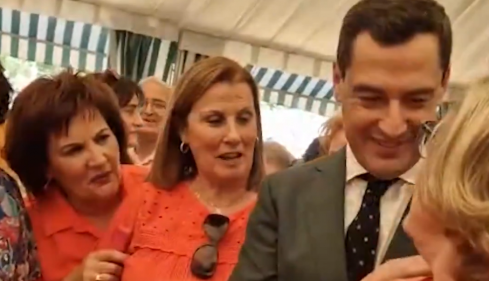 El vídeo fue subido en las redes sociales del presidente. Se produjo en el contexto de un recorrido de visitas institucionales y de partido de Juanma Moreno. Tras el Consejo de Gobierno, el presidente estuvo en la caseta del PP, primero, y luego en CCOO, que es una caseta justo frente a la popular en la Feria de Sevilla.