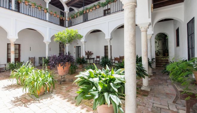 Unas 1.800 macetas de flores adornan este hotel que ya ha pasado por distintas restauraciones, sin perder la esencia y que presenta un túnel subterráneo que conecta todas las casas palacio. En su interior se divisan vestigios romanos y una muralla de la época, según recoge el portal Sevilla Secreta.