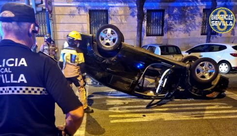 El turismo que hizo esta peligrosa maniobra dio un vuelco quedando totalmente tumbado en medio de la vía. Afortunadamente, según ha explicado Emergencias Sevilla en sus redes sociales, las personas ocupantes se encuentran sanas y salvas. Tanto los dos conductores, de 28 y de 32 años, y un ocupante, de 27, han sufrido lesiones leves. No se ha realizado tasa de alcoholemia.