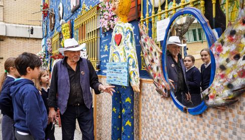 El componente artístico también ha tenido un papel destacado. Manuel Salas, artesano y referente cultural del barrio, ha colaborado con el centro. "Con enorme satisfacción suelo colaborar con el colegio por su interés en enseñar la cultura artística a los peques", afirma.