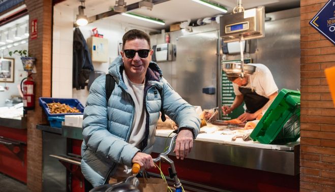 Sobre los cambios que ha vivido este mercado, Jorge Cadaval explica que "las cosas hay que reciclarse, la vida es renovarse o morir, como dice el refrán. Yo conozco los puestos de toda la vida, compro donde he comprado toda la vida". Puestos como pescadería Conde, en la que se lleva sus mandaos este martes. "Que tiene pescado estupendo".