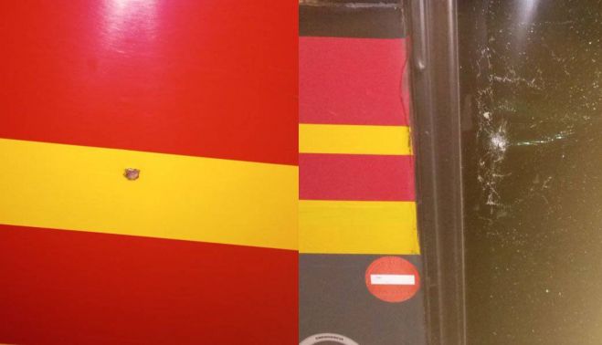 En ese sentido, explica con varias imágenes tomadas el sábado por la noche, indicando que "a una compañera la han tiroteado, gracias a Dios sin heridos. Constantemente hay apedreamientos e impactos de lo que se supone que son carabinas, porque nadie investiga sobre esto".