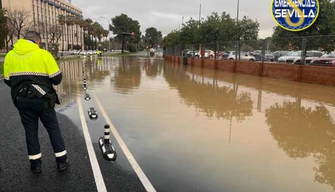 La Policía Local de Sevilla ha activado este sábado un corte de tráfico en la avenida Alcalde Luis Uruñuela, en sentido avenida de las Ciencias, debido a la acumulación de agua en la calzada procedente del sistema de alcantarillado. La incidencia está relacionada con la crecida de los cauces cercanos tras las intensas lluvias.