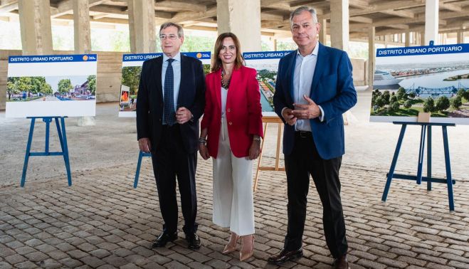 Tanto el alcalde de Sevilla, José Luis Sanz, como la consejera de Fomento, Articulación del Territorio y Vivienda, Rocío Díaz, han acompañado a Rafael Carmona, presidente de la Autoridad Portuaria, en la presentación de esta 'ciudad' a orillas del río Guadalquivir. En concreto, en el espacio situado entre el puente de las Delicias y el puente del Centenario.
