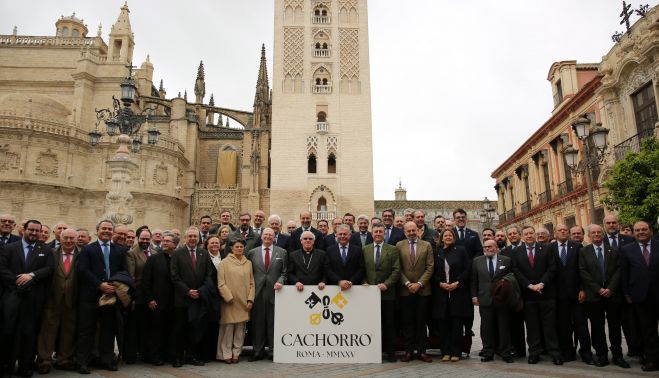 Multitudinario encuentro el celebrado este mediodía en el centro de Sevilla para mostrar el respaldo y todo el apoyo por parte de los estamentos religiosos, políticos y cofrades de la ciudad ante la inminente participación del Santísimo Cristo de la Expiración de la Hermandad del Cachorro en el Jubileo de las Cofradías, que se celebrará en Roma del 16 al 18 del próximo mes de mayo.
