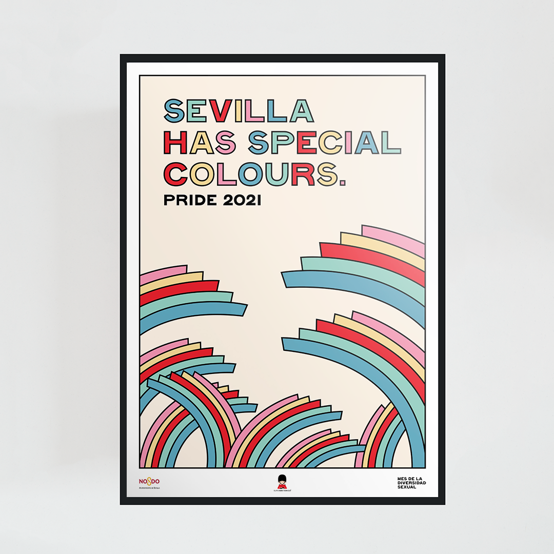 "Sevilla has special colours", se lee en el cartel que anuncia el Orgullo en la ciudad hispalense este 2021, diseñado por Superbritánico, y que está inspirado en la cartelería —y en la cresta— de Curro, la mascota de la Expo 92. "Tengo el honor de presentaros el cartel del Orgullo de Sevilla de este año; un diseño inspirado en la variada cartelería de la Expo 92 que pretende reflejar la diversidad que existe en Sevilla, una ciudad llena de contrastes en la que todo el mundo tiene cabida", explica el autor en redes sociales.