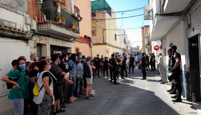 Leonor tiene 60 años y una discapacidad reconocida del 72%. Esta mañana, la policía por solicitud del grupo cooperativo Cajamar la ha echado de la casa donde vivía sola en la calle Fernando Rojas del sevillano barrio de Su Eminencia. A la ejecución del desahucio se han personado unos 200 vecinos y vecinas de la zona, integrantes de la Plataforma de Afectados de la Hipoteca (PAH) y Stop Desahucios, convocantes de la acción, la plataforma Barrios Hartos y representantes políticos de Adelante Andalucía: la concejala, Sandra Heredia, y el diputado no adscrito, Nacho Molina.