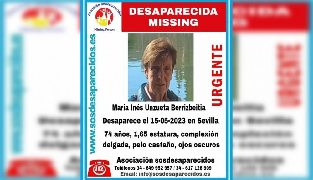 María Inés Unzueta, una mujer de 74 años que se encontraba de vacaciones con familiares en Sevilla, ha desaparecido. La Policía Nacional y la Guardia Civil ya están trabajando en su búsqueda.