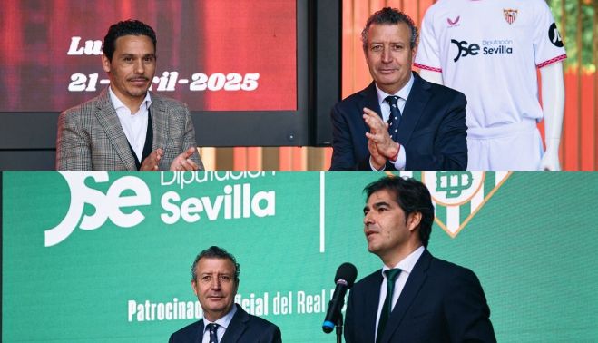La Diputación de Sevilla ha formalizado este lunes dos acuerdos de patrocinio institucional con los principales clubes de fútbol de la capital andaluza, el Sevilla FC y el Real Betis Balompié, con el objetivo de reforzar los vínculos entre ambas entidades deportivas y los municipios de la provincia. Los convenios estarán vigentes durante el año 2025 y contemplan diversas acciones para fomentar valores como la igualdad, la inclusión, la sostenibilidad y la promoción del deporte base.