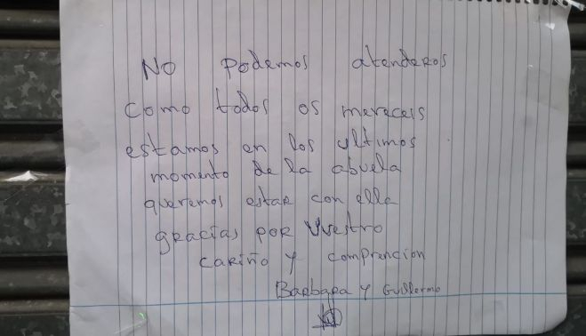 "Estamos en los últimos momentos de la abuela. Queremos estar con ella. Gracias por vuestro cariño y comprensión", se podía leer en un cartel en la entrada de la tienda.