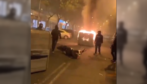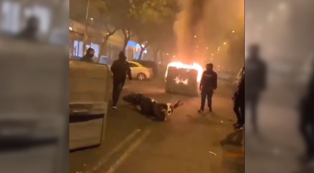 Los manifestantes acudieron con petardos y con fuegos artificiales que hicieron ya llegada la madrugada. Tomaron al menos tres contenedores y los cruzaron en la calle, que en ese momento tenía multitud de coches aparcados, e incluso colocaron una moto tirada en el suelo para realizar el citado corte de calle.